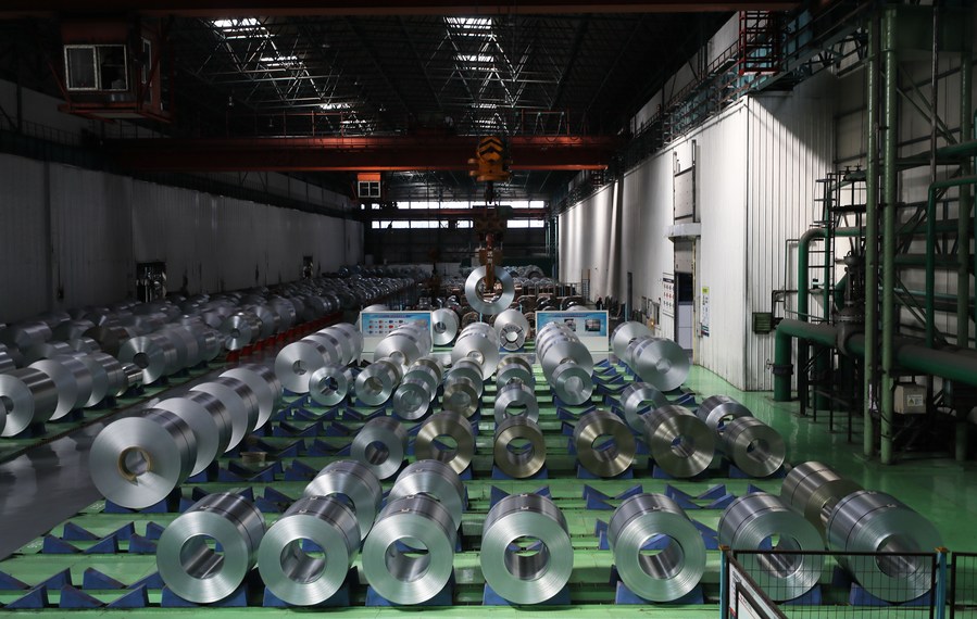 Photo taken on Aug. 19, 2021 shows steel rolls at a factory of Ansteel in Anshan City, northeast China's Liaoning Province. (Xinhua/Yang Qing)