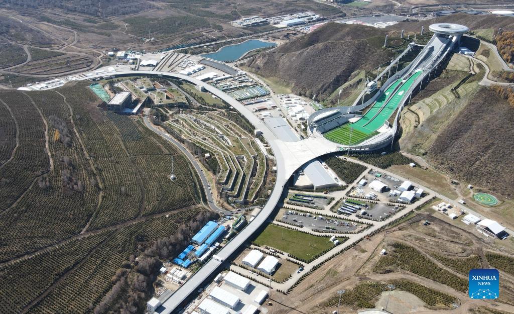 Aerial photo taken on Oct. 20, 2021 shows the National Ski Jumping Center in Chongli district of Zhangjiakou City in north China's Hebei Province. With 100 days to go before the Beijing 2022 Winter Olympic Games, Chongli is ready to welcome the world. (Xinhua/Jin Haoyuan)