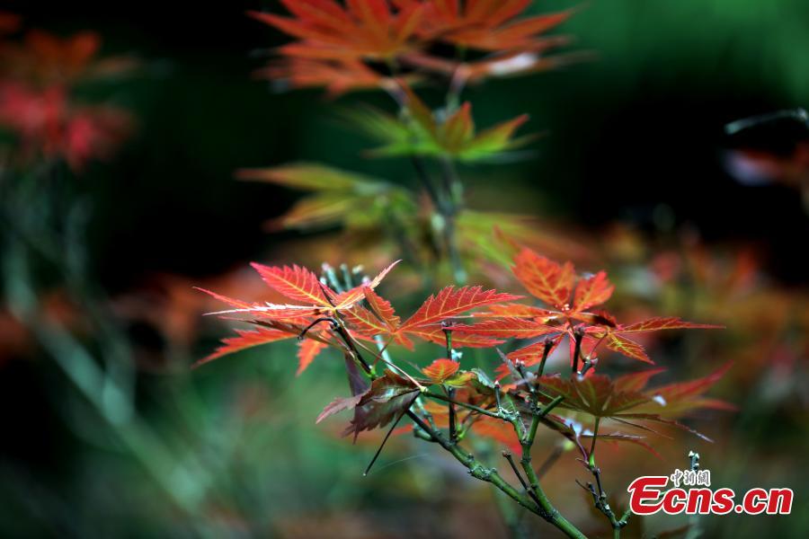 Maple leaves in Qingyan Park turn red after the autumn rain in Huaian City, East China's Jiangsu Province, Oct. 26, 2021. (Photo: China News Service/Zhou Changguo)