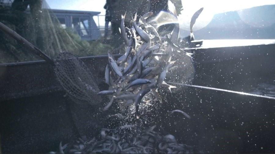 A photo taken on October 23, 2021 shows fishermen harvesting red-tailed fish on the Jingpo Lake in Mudanjiang, northeast China’s Heilongjiang Province. (Photo/ Su Qun)