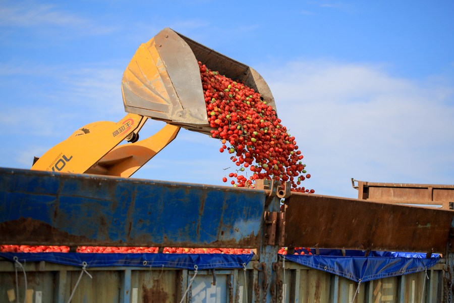 Due to its unique natural conditions, Xinjiang's tomato planting and processing has become a featured local industry, with its tomato products having been sold to European, American, African and Central Asian countries and regions, according to Zhu Dagang, deputy head of Xinjiang's industry and information technology department.