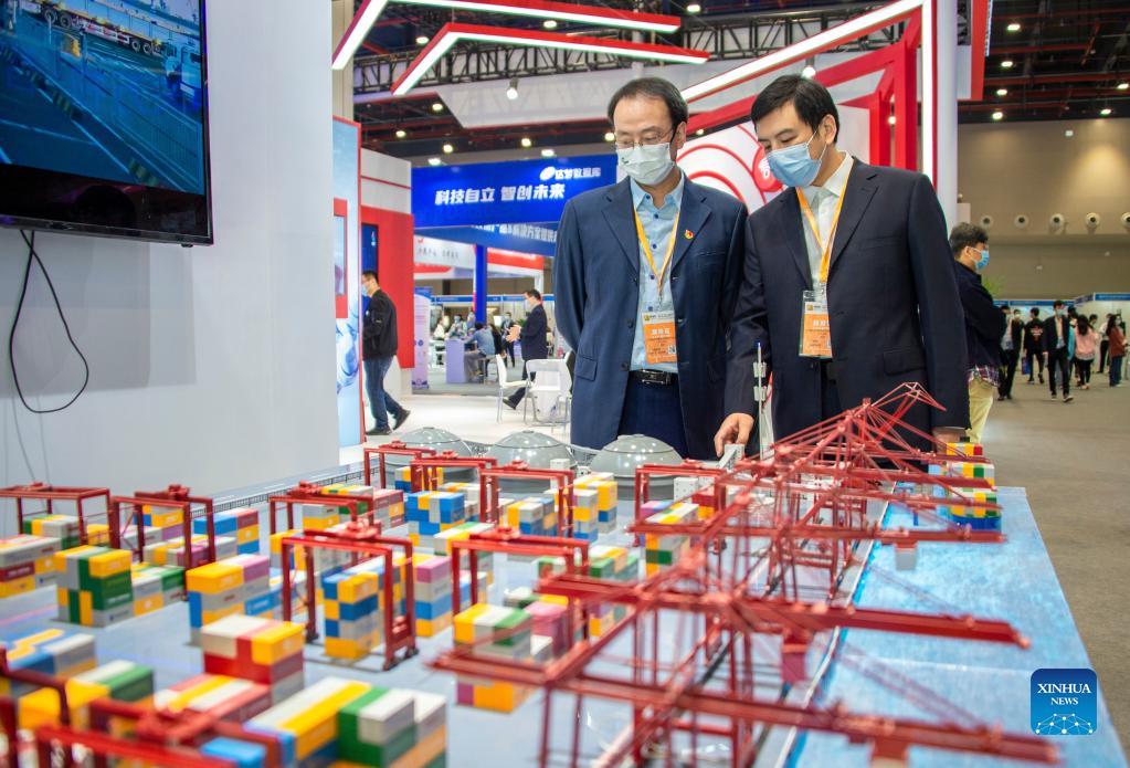 People visit the 18th Optics Valley of China International Optoelectronic Exposition and Forum in Wuhan, central China's Hubei Province, Oct. 27, 2021. The expo and forum opened here on Wednesday. (Photo by Wu Zhizun/Xinhua)