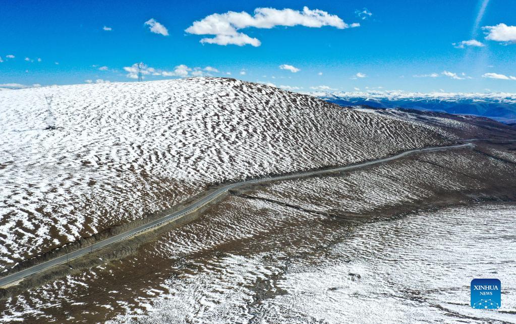 Aerial photo taken on Oct. 24, 2021 shows a road in Baiyu County, Tibetan Autonomous Prefecture of Garze, southwest China's Sichuan Province. (Xinhua/Wang Xi)