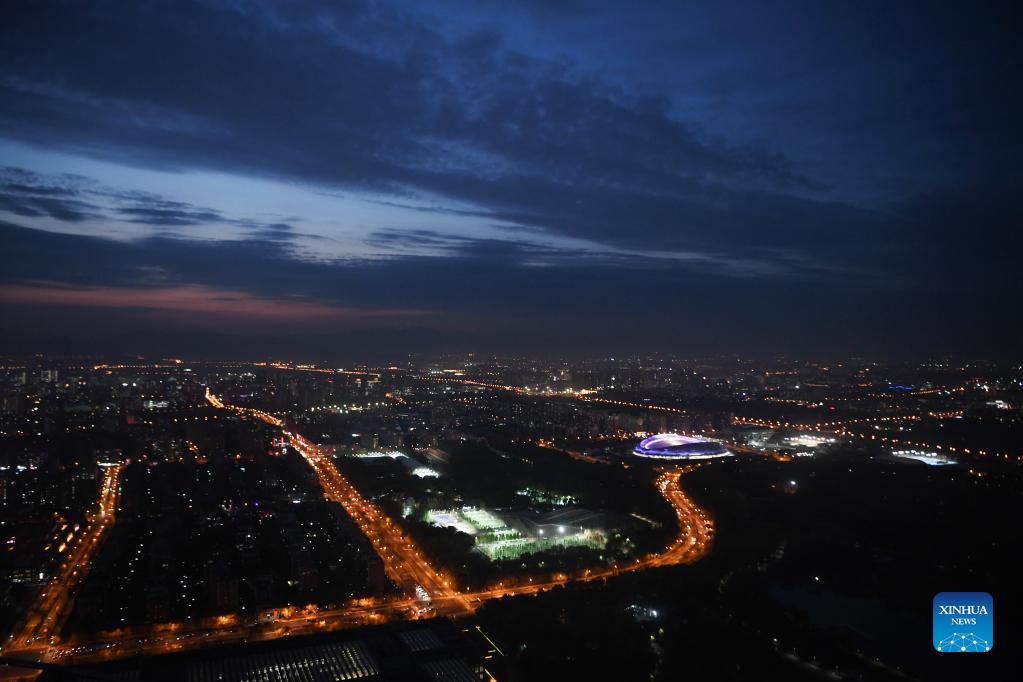 Picture taken with drone on Oct. 28, 2021 shows an aerial view of National Speed Skating Oval. With the renovation of China's National Stadium completed on Oct. 28, 2021, all construction and renovation work of competition venues in Beijing are completed, including infrastructure and supporting facilities. (Xinhua/Zhang Chenlin)