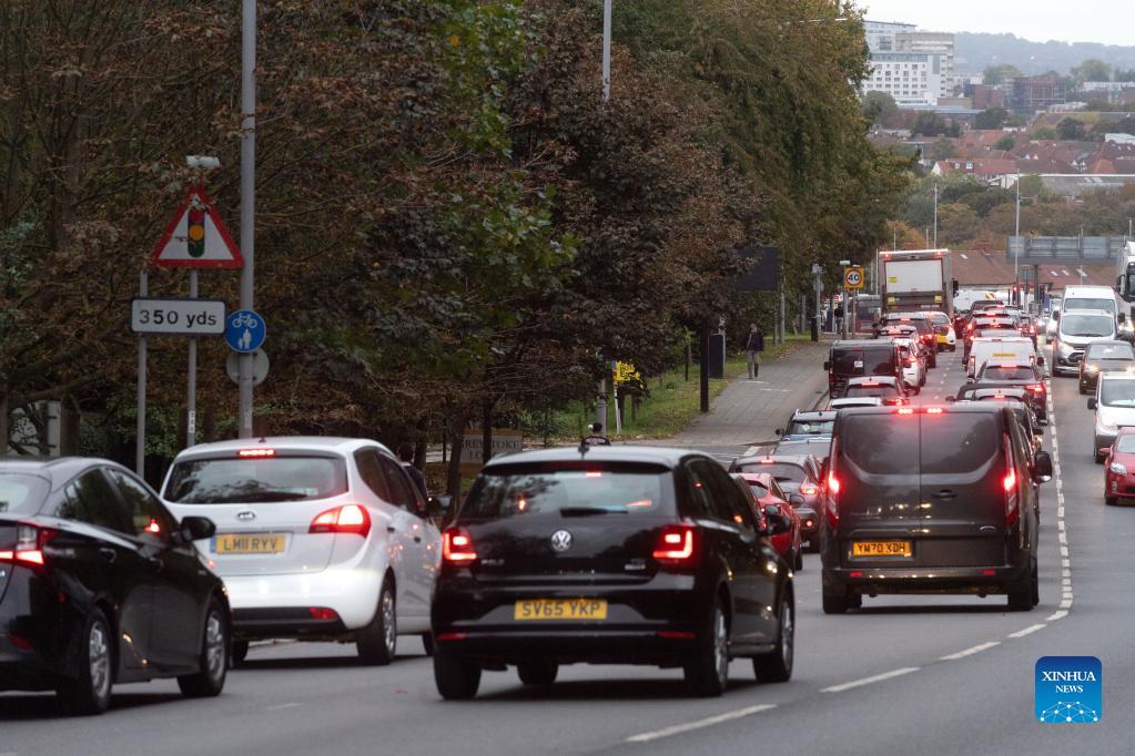 Vehicles drive through the ULEZ (ultra low emission zone) in London, Britain, Oct. 26, 2021. The 26th United Nations Climate Change Conference of the Parties (COP26) will be held from Oct. 31 to Nov. 12 in Glasgow. (Photo by Ray Tang/Xinhua)
