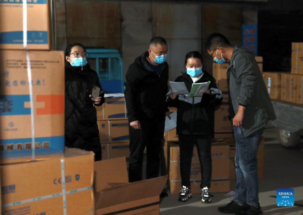 Staff members check equipment for epidemic control and prevention in Shenze County of Shijiazhuang, north China's Hebei Province, Oct. 31, 2021. One locally transmitted COVID-19 case and one asymptomatic case have been registered in Shenze on Sunday. (Photo by Zhai Haijing/Xinhua)