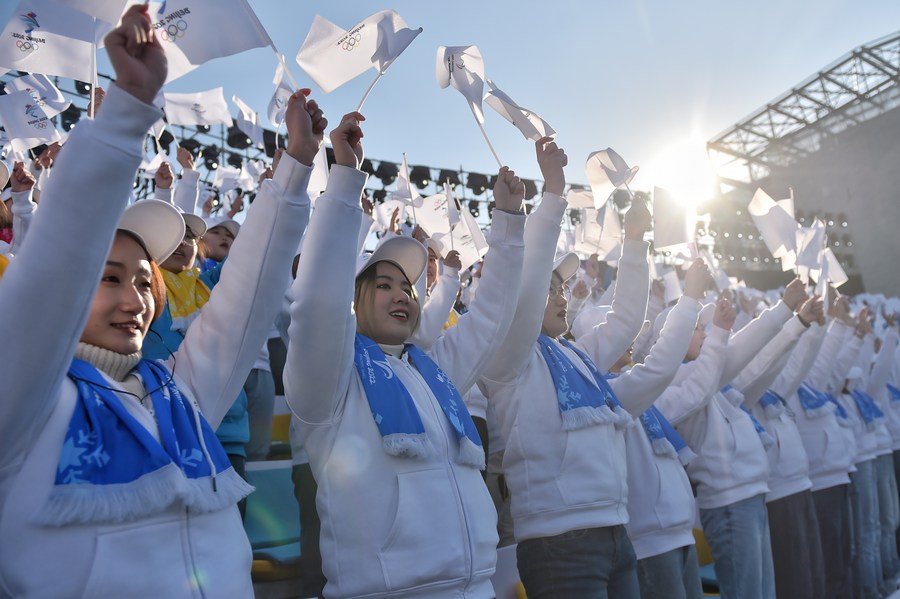 Representatives of the volunteers attend the launching ceremony of the global recruitment of volunteers for the 2022 Olympic and Paralympic Winter Games in Beijing, capital of China, Dec. 5, 2019. (Xinhua/Peng Ziyang)