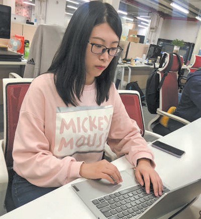AI trainer Wei Zimu works in her office. (People's Daily Online/Liu Shiyao)