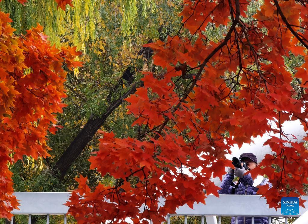Photo taken on Nov. 2, 2021 shows the autumn scenery at Yuyuantan Park in Beijing, capital of China. (Xinhua/Luo Xiaoguang)