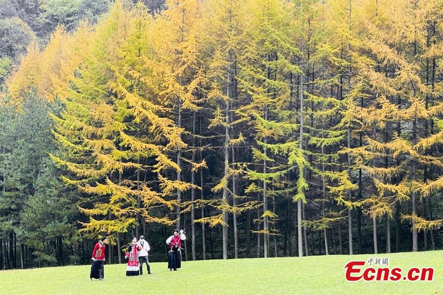 Tourists immerse themselves in the natural scenery of the Autumn at Zengjiashan, Guangyuan city, southwest China's Sichuan Province. (Photo: China News Service/Wang Yansheng)