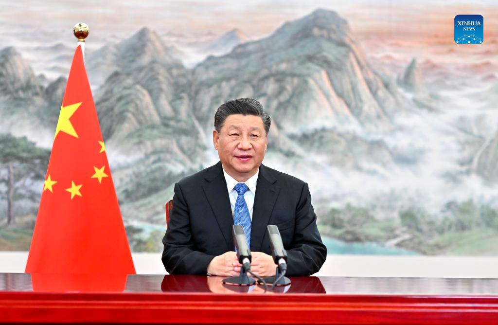 Chinese President Xi Jinping delivers a keynote speech via video at the opening ceremony of the fourth China International Import Expo held in east China's Shanghai on Nov. 4, 2021. (Xinhua/Li Xueren)