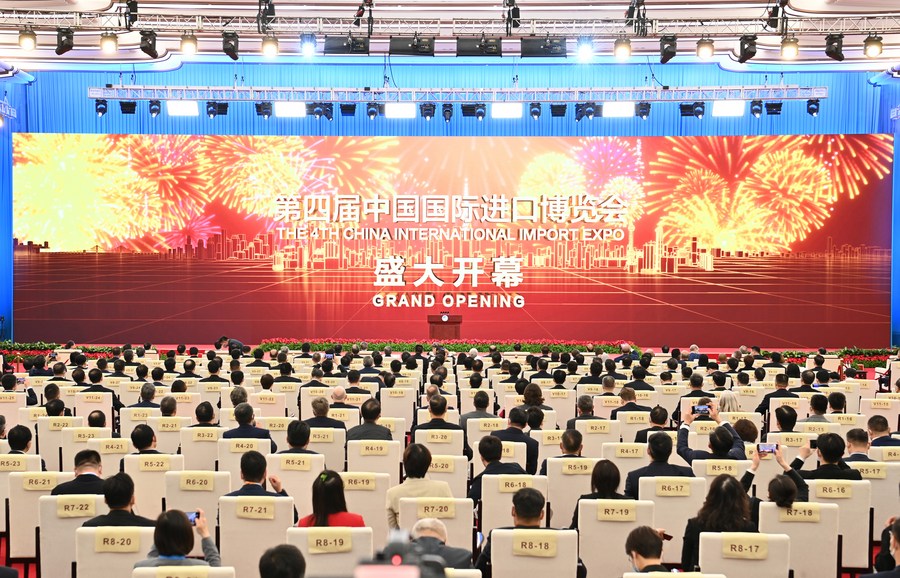 The opening ceremony of the fourth China International Import Expo is held in east China's Shanghai on Nov. 4, 2021. (Xinhua/Li Xiang)