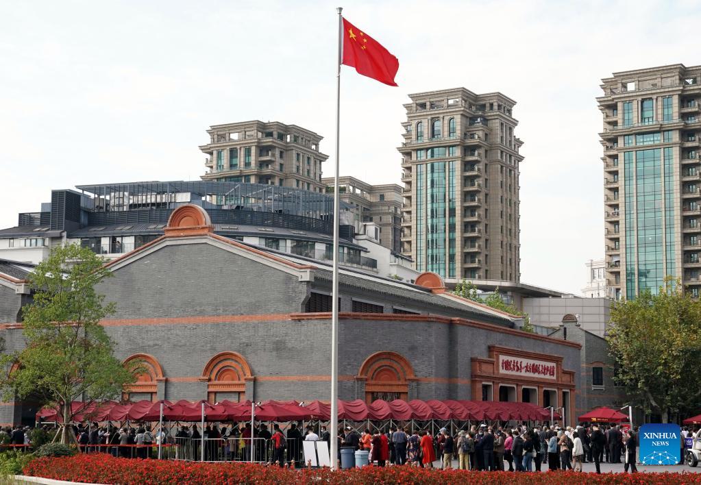 People queue to enter the memorial of the First National Congress of the Communist Party of China (CPC) in east China's Shanghai, Nov. 3, 2021. The 4th China International Import Expo (CIIE) is scheduled for Shanghai from Nov. 5 to 10. (Xinhua/Liu Ying)