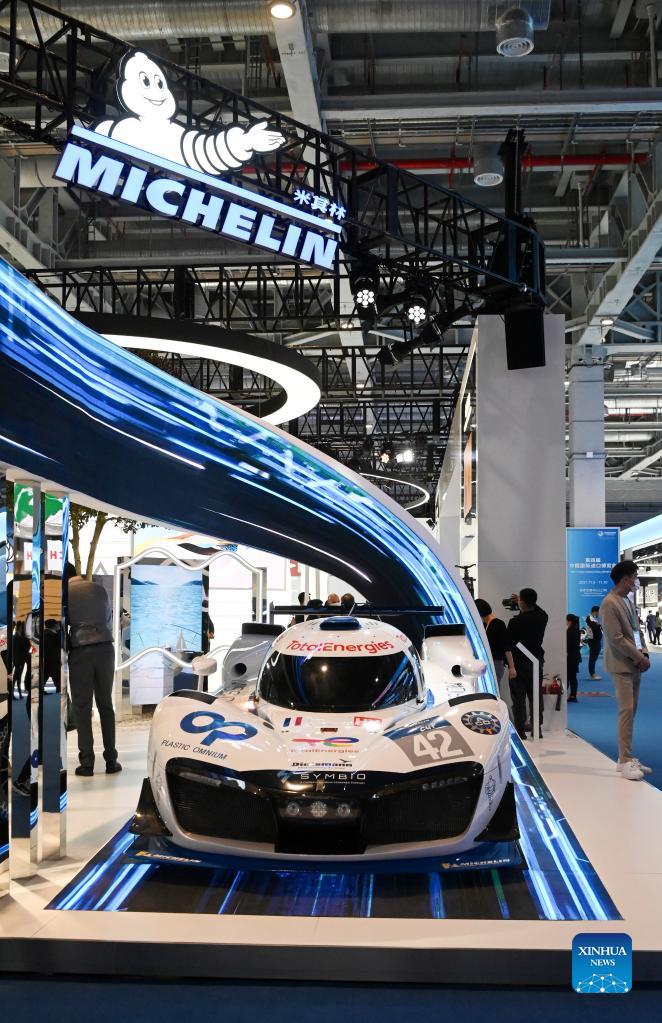 A Michelin new energy race car is displayed at the 4th China International Import Expo (CIIE) in Shanghai, east China, Nov. 5, 2021. (Xinhua/Hao Jianwei)