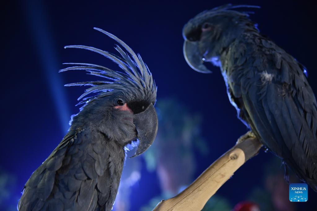 Macaws are seen during the Riyadh Safari in Riyadh, Saudi Arabia, Nov. 7, 2021. As part of Riyadh season 2021, the Riyadh Safari has opened to public, attracting thousands of people to spend their time with animals. (Xinhua/Wang Haizhou)