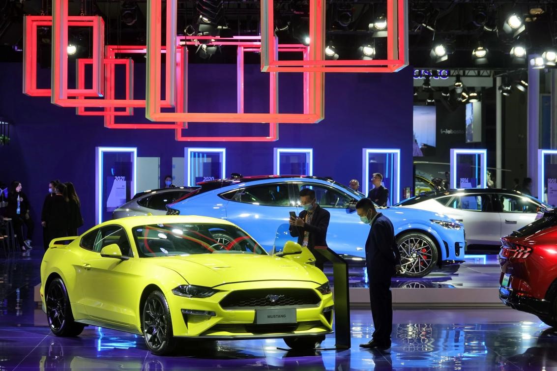 People visit the exhibition booth of Ford at the 4th China International Import Expo, Nov. 5, 2021. (People’s Daily Online/Tang Ke)