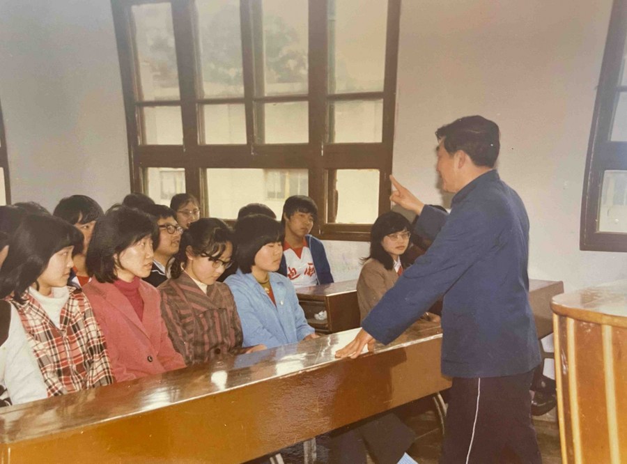 File photo taken in the late 1980s shows Wang Qichang giving a class at a school.(Xinhua)
