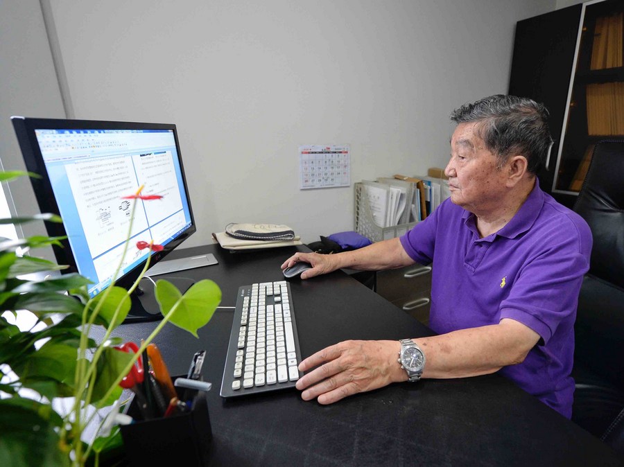 Wang Qichang works at office in Chengdu, southwest China's Sichuan Province, Sept. 15, 2021.(Xinhua/Liu Kun)