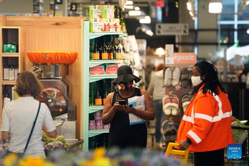 People shop in a grocery store in Washington, D.C., the United States, on Nov. 10, 2021. U.S. inflation remained elevated in October as supply chain disruptions have persisted for months, surging to the highest level in three decades, the Labor Department reported on Wednesday. The consumer price index (CPI) soared 0.9 percent in October after rising 0.4 percent in September, according to the latest report released by the department's Bureau of Labor Statistics. (Photo by Ting Shen/Xinhua)