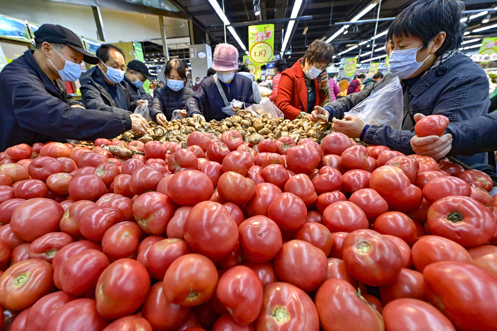 Customers shop in the produce section of a supermarket in Qingzhou, Shandong province, on Wednesday. China's consumer price index, a main gauge of inflation, rose 1.5 percent year-on-year in October. WANG JILIN/FOR CHINA DAILY