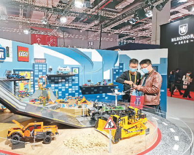 People visit the booth for Danish toy giant LEGO Group at the 4th China International Import Expo (CIIE) in Shanghai. (People’s Daily Overseas Edition/Qiu Haifeng)