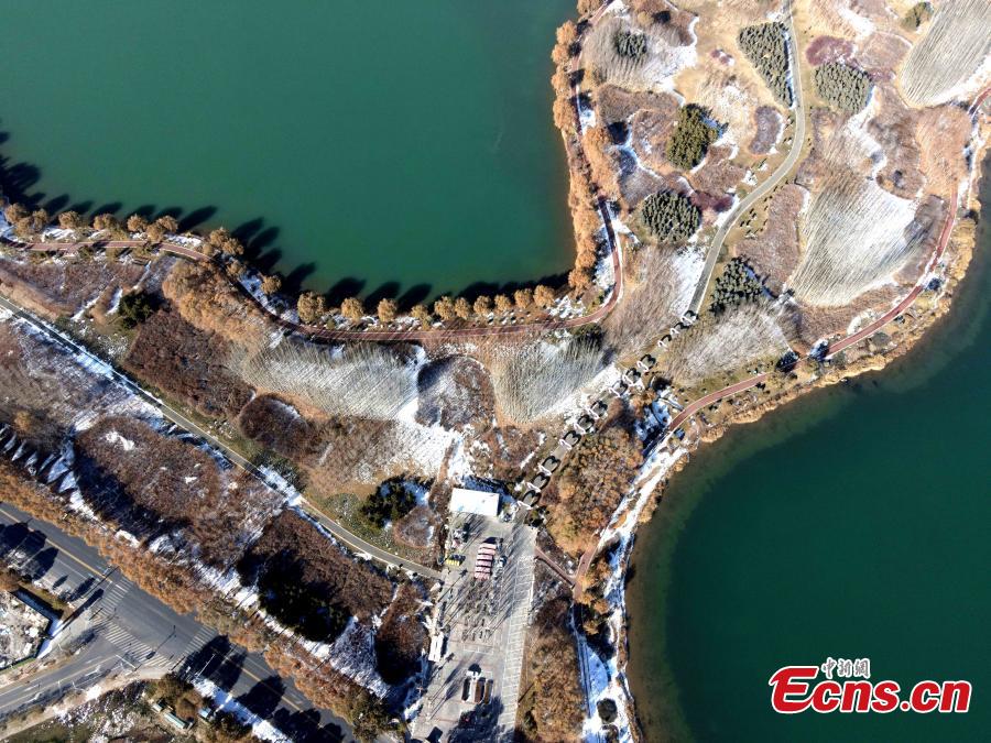 This aerial photo taken on Nov. 11, 2021 shows the picturesque early winter scenery at Lushuiwan scenic area in Zhangye City, northwest China's Gansu Province. (Photo/Cheng Li)