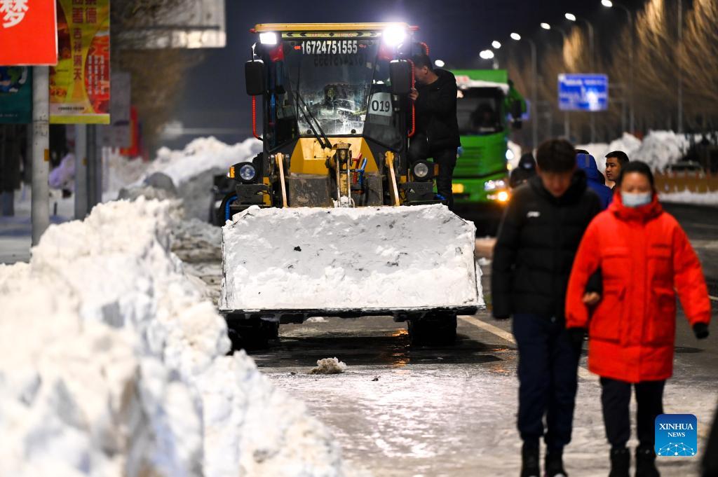 Snow removing operations carried out to resume transportation, production in Inner Mongolia