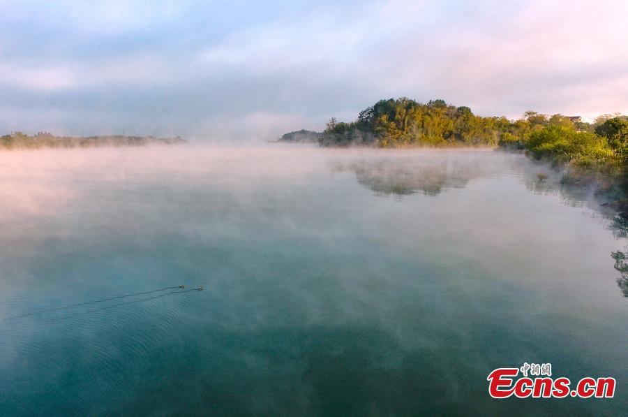 Magnificent clouds and mist appears in Xiu River reach of Qingjiang Township, Jiujiang City, Jiangxi Province, Nov. 9, 2021. (Photo/Jiang Dexian)