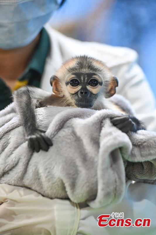 China's first artificially bred black-shanked douc debuts in Guangzhou (2)