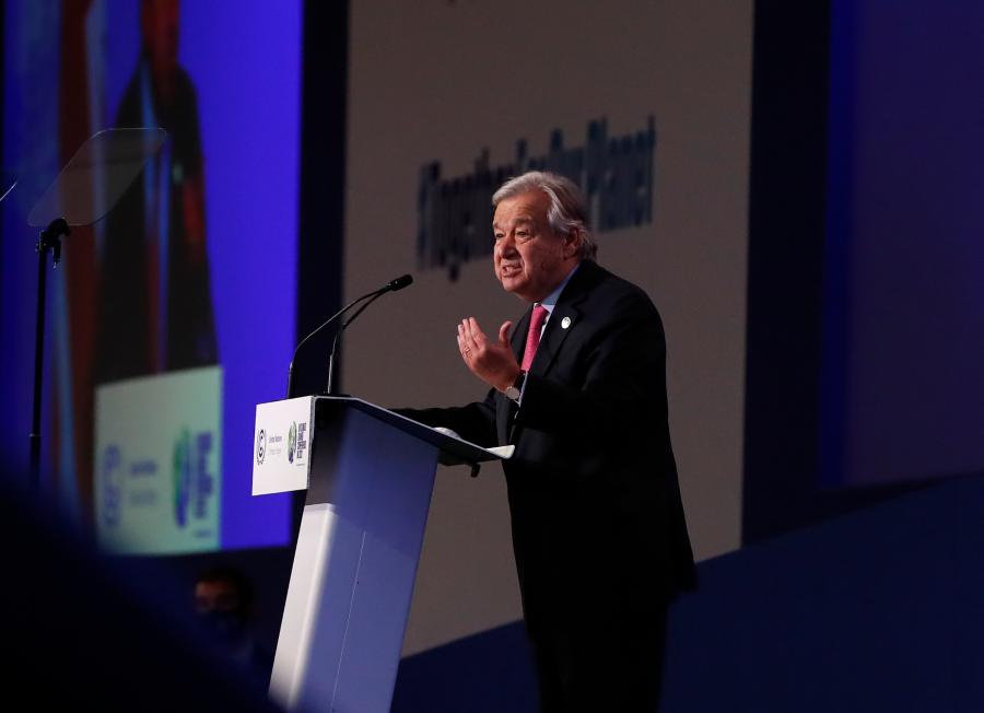 UN Secretary-General Antonio Guterres addresses the opening ceremony of the World Leaders Summit at the 26th United Nations Conference of Parties on Climate Change (COP26) in Glasgow, Britain, Nov. 1, 2021. (Xinhua/Han Yan)