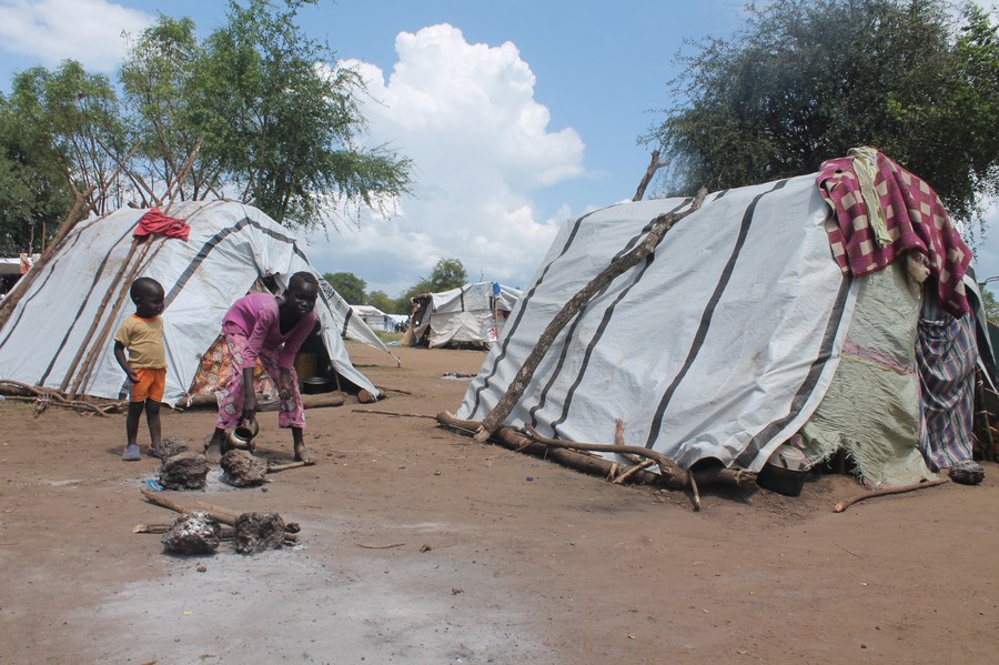 Children were at a temporary camp hosting flood victims in Mangalla, South Sudan, on Oct. 23, 2020. (Xinhua/Gale Julius)