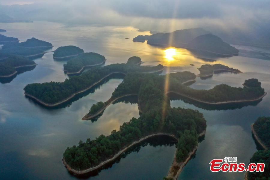 Photo taken on Nov. 14, 2021 shows the early winter scenery of Qiandao Lake, or Thousand-Island Lake, in Chun'an County in Hangzhou, east China's Zhejiang Province. The lake covers 573 square kilometers, and is home to 114 known fish species. (Photo: China News Service/Yu Jianfeng)