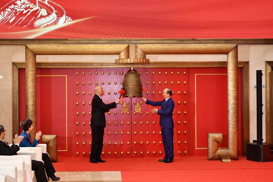 Photo taken on Nov. 15, 2021 shows a scene at the opening ceremony of the Beijing Stock Exchange, in Beijing, capital of China. (Xinhua/Li Xin)