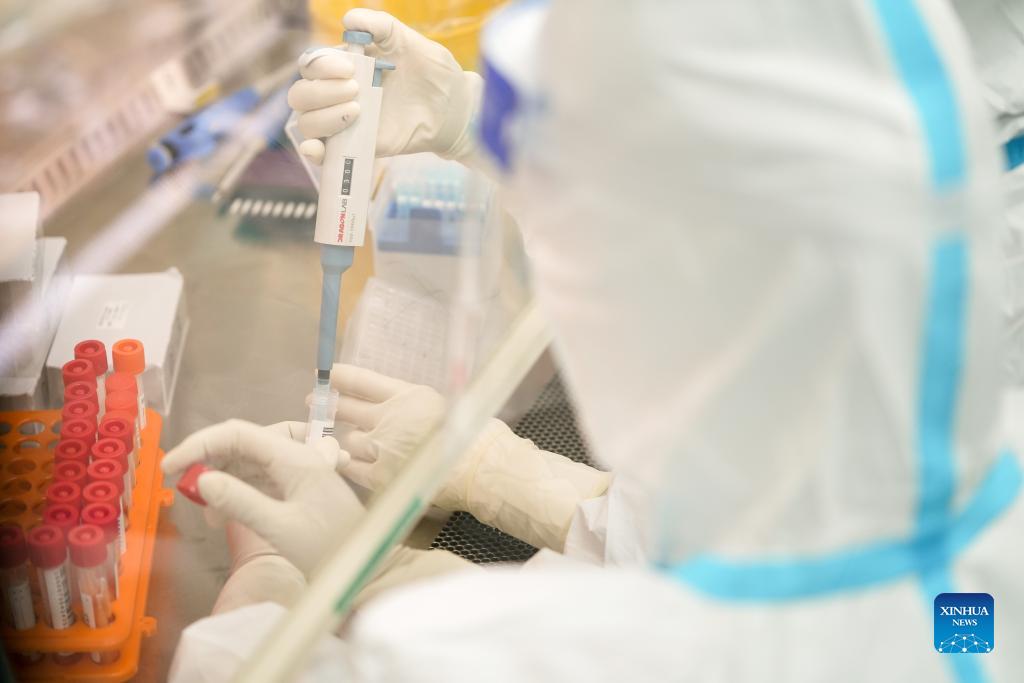 A medical worker tests nucleic acid samples in a nucleic acid test laboratory named Huoyan, or Fire Eye in Aihui District of Heihe City, northeast China's Heilongjiang Province, Nov. 15, 2021. "Huoyan" laboratory has significantly improved the city's COVID-19 testing capability. (Xinhua/Wang Song)