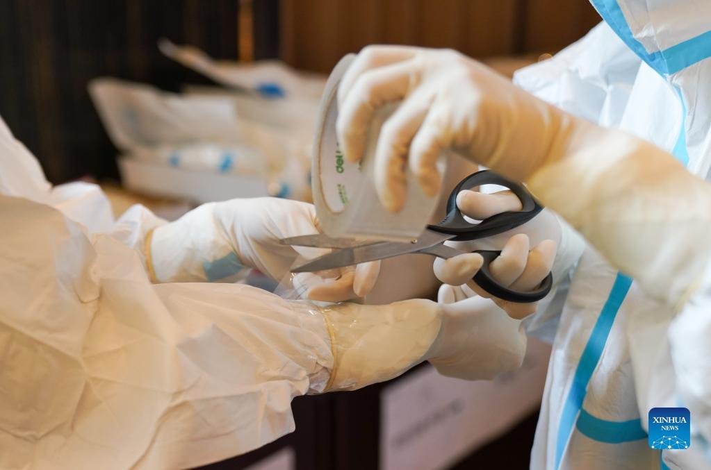 Medical workers prepare to test nucleic acid samples in Aihui District of Heihe City, northeast China's Heilongjiang Province, Nov. 15, 2021. "Huoyan" laboratory has significantly improved the city's COVID-19 testing capability. (Xinhua/Wang Song)