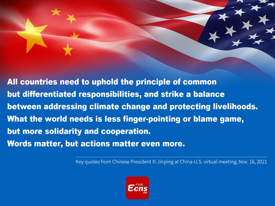 Key quotes from Chinese President Xi Jinping at China-U.S. virtual meeting