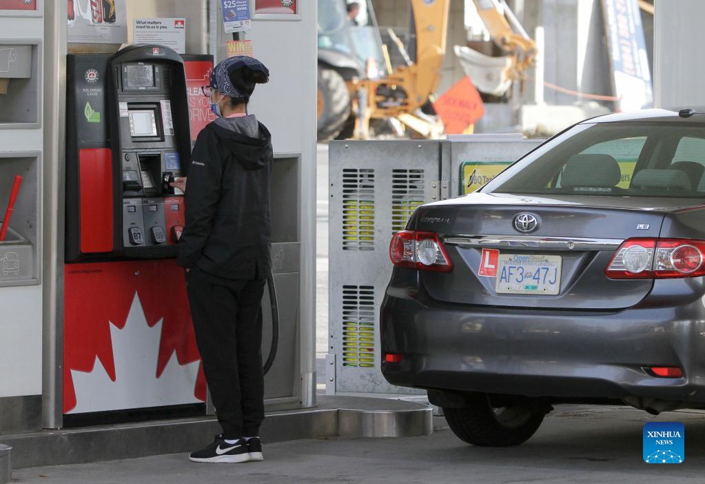 A person pays for gasoline at a gas station in Vancouver, British Columbia, Canada, on Nov. 17, 2021. Canada's annual inflation rose to 4.7 percent in October 2021 from the previous month's 4.4 percent, according to Statistics Canada on Wednesday. (Photo by Liang Sen/Xinhua)