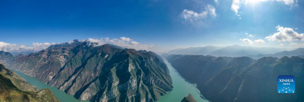 Aerial panoramic photo taken in Wushan County, southwest China's Chongqing Municipality on Nov. 18, 2021 shows the Wuxia Gorge, one of the Three Gorges on the Yangtze River. (Xinhua/Huang Wei)
