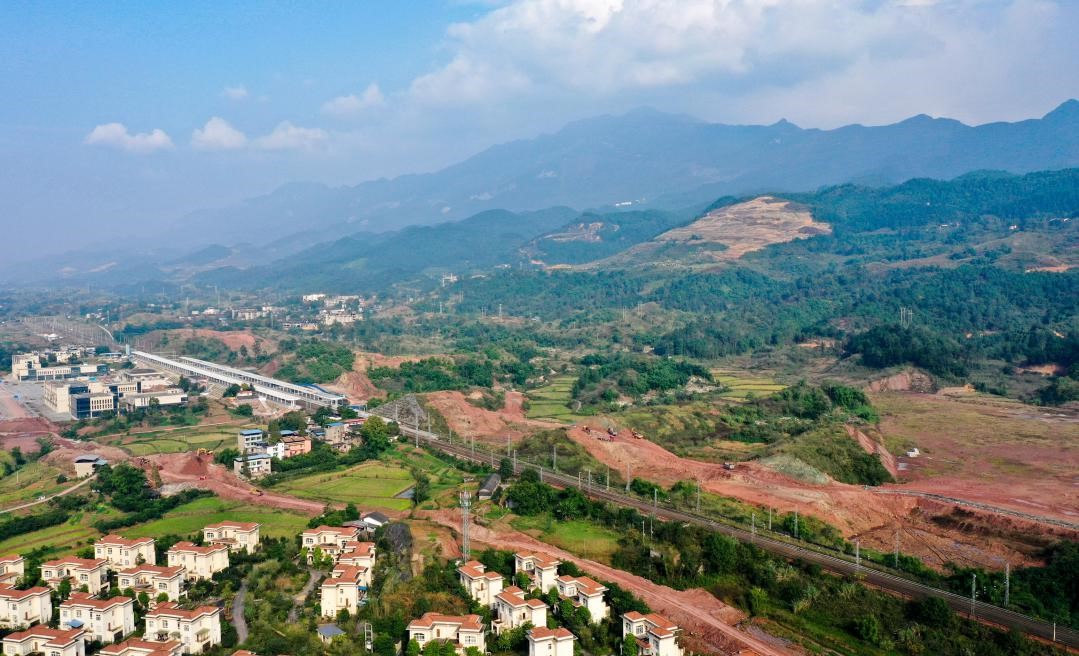 Photo taken on Nov. 6, 2020 shows a national-level comprehensive freight yard under construction in Gaoxing township, southwest China's Sichuan Province. (People's Daily Online/Qiu Haiying)