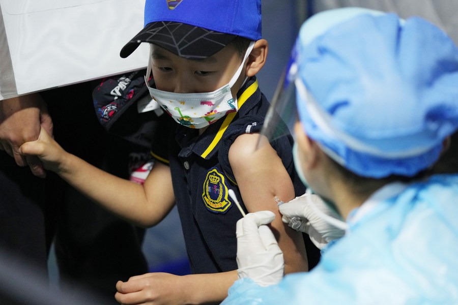 Starting from Oct. 28, the Chinese capital started COVID-19 vaccination for children aged between 3 and 11. More than 950,000 minors of this age group had been vaccinated as of Thursday.