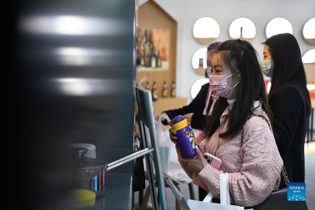 Visitors shop at the Exhibition of Import Commodity during the fourth World Manufacturing Convention in Hefei, capital of east China's Anhui Province, Nov. 20, 2021. The fourth World Manufacturing Convention kicked off Friday in Hefei. The four-day event, themed "innovation-driven, digitally empowered: global manufacturing industry aligned for high-quality growth," aims to promote high-quality manufacturing and deepen exchanges between China and the rest of the world. (Xinhua/Zhang Duan)