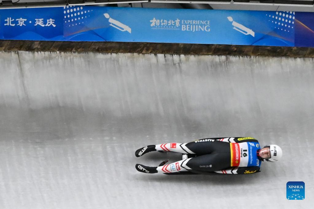 Lisa Schulte of Austria competes during Women's Singles at the Experience Beijing FIL Luge World Cup in Yanqing, Beijing on Nov. 21, 2021. (Xinhua/Chen Yichen)