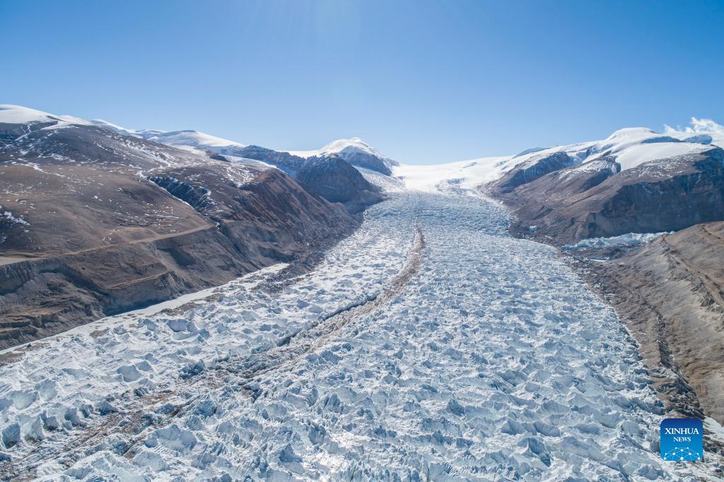 Aerial photo taken on Nov. 20, 2021 shows the Gangbug Glacier in the border area between Nagarze and Kangmar counties, southwest China's Tibet Autonomous Region. (Xinhua/Sun Ruibo)