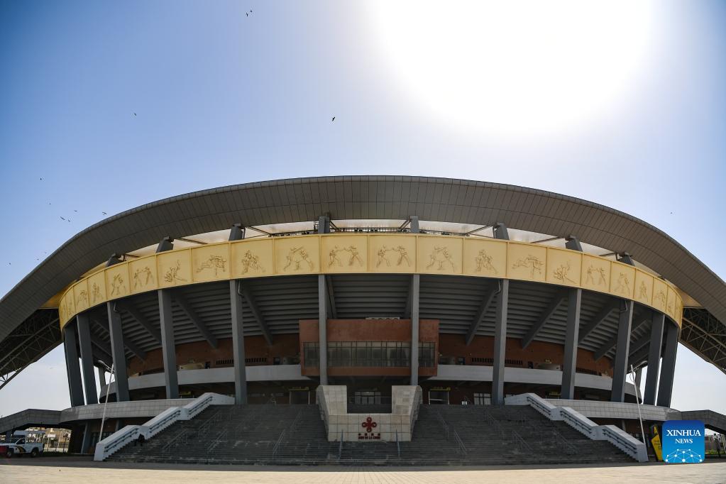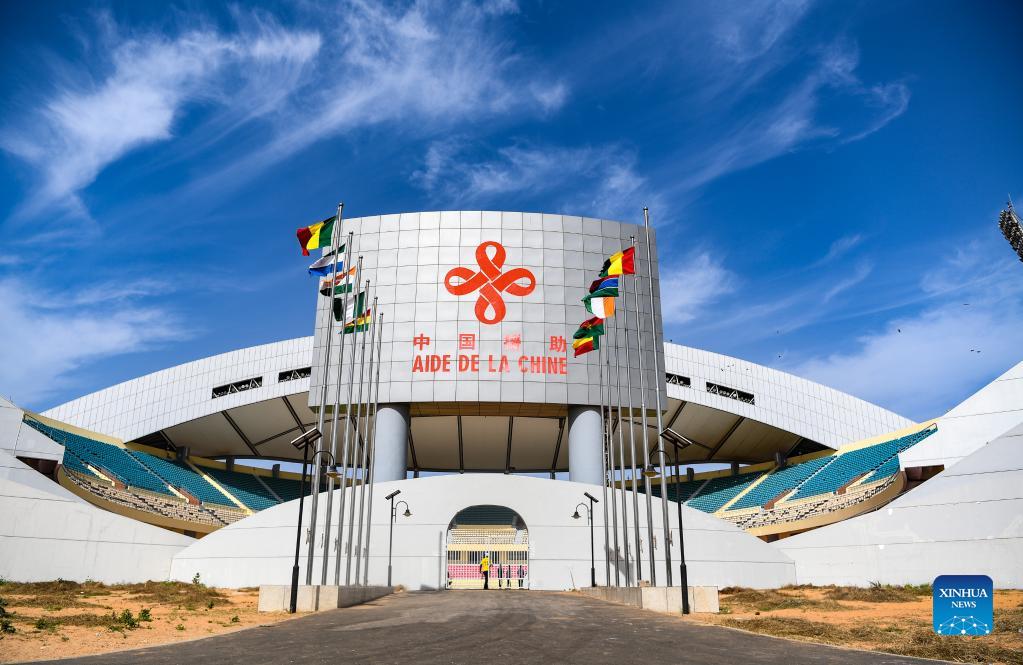 Photo taken on Nov. 21, 2021 shows the exterior view of the National Wrestling Arena in Dakar, Senegal. The arena, the first modern one in Africa, is the largest aid project China has carried out in Senegal. (Xinhua/Li Yan)
