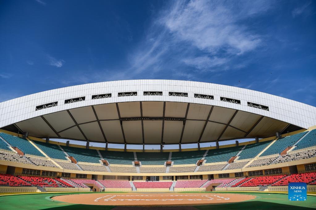 Photo taken on Nov. 21, 2021 shows the interior view of the National Wrestling Arena in Dakar, Senegal. The arena, the first modern one in Africa, is the largest aid project China has carried out in Senegal. (Xinhua/Li Yan)