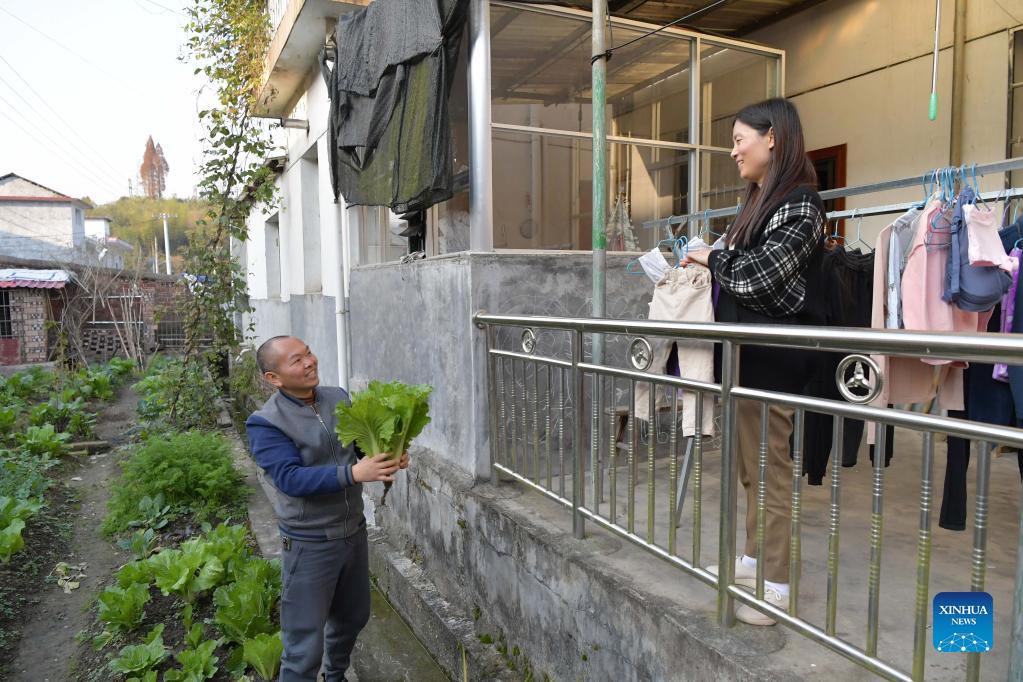 Wang Jingming (L) and his wife Deng Jun, both teachers, do housework at their home near Changfeng School in Luxi County, east China's Jiangxi Province, Nov. 18, 2021. Changfeng School sits deep in the Luoxiao Mountains. Among its 30 teachers, there are six couples. For the 170 students in the school, these couples are not only teachers teaching them knowledge but more like parents taking care of lower graders and boarding students. Wang Jingming, 46, is a chemistry teacher. In 2004, he married Deng Jun, a math teacher at the school. "We have a deep affection for the kids here and we are happy to witness their growth," said Wang. "We are willing to spend our whole lives guarding this school and protecting these kids in the mountains, hoping they can have a wonderful life." (Xinhua/Peng Zhaozhi)