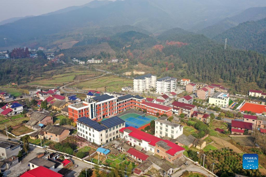 Aerial photo taken on Nov. 18, 2021 shows a view of Changfeng School in Luxi County, east China's Jiangxi Province. Changfeng School sits deep in the Luoxiao Mountains. Among its 30 teachers, there are six couples. For the 170 students in the school, these couples are not only teachers teaching them knowledge but more like parents taking care of lower graders and boarding students. Wang Jingming, 46, is a chemistry teacher. In 2004, he married Deng Jun, a math teacher at the school. "We have a deep affection for the kids here and we are happy to witness their growth," said Wang. "We are willing to spend our whole lives guarding this school and protecting these kids in the mountains, hoping they can have a wonderful life." (Xinhua/Peng Zhaozhi)