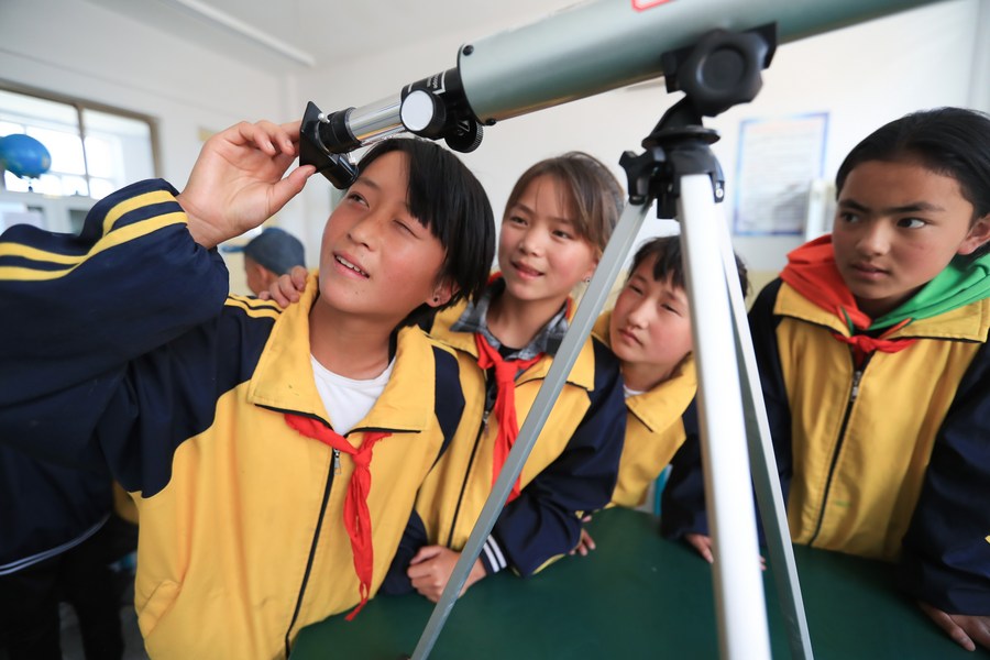 Students have a natural science class at Gongbeiwan Primary School in Linxia Hui Autonomous Prefecture in northwest China's Gansu Province, May 29, 2020. (Xinhua/Ma Xiping)