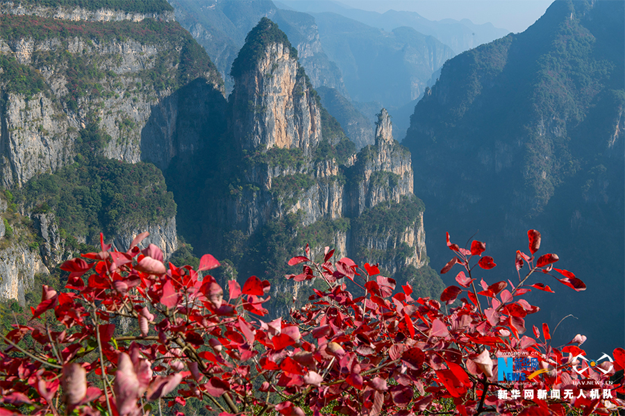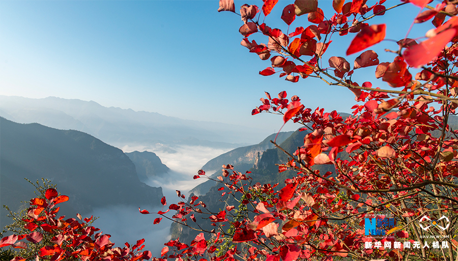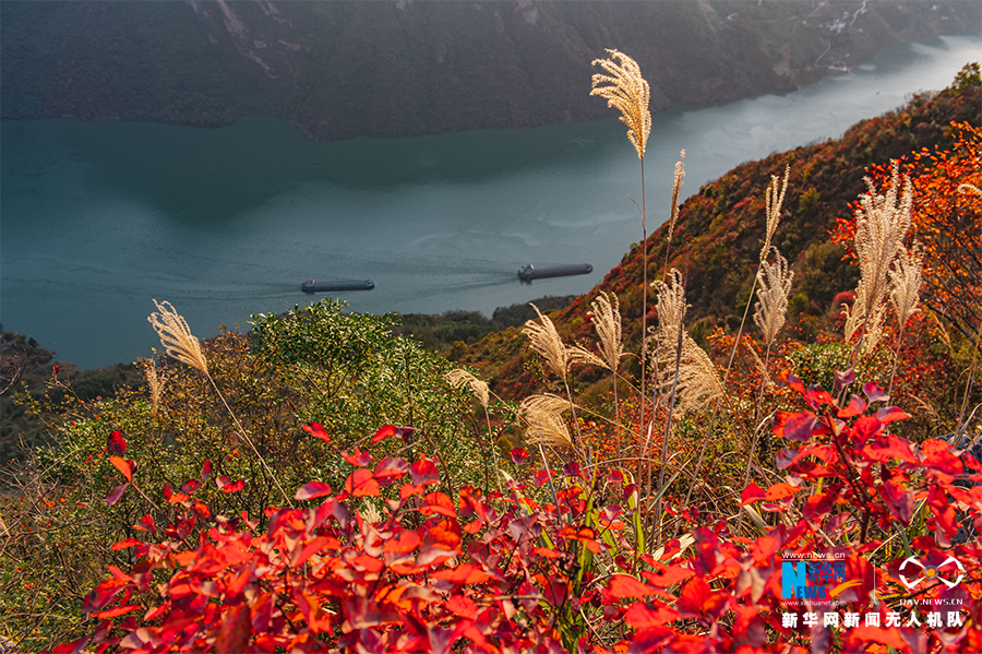 Aerial photo shows scenery of red leaves decorating the Three Gorges in early winter. (Photo by Wang Changzheng/Xinhuanet)