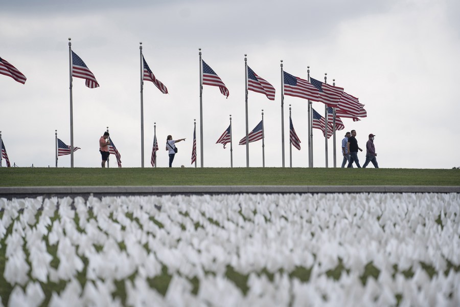 White flags are seen on the National Mall in Washington, D.C., the United States, on Sept. 16, 2021. (Xinhua/Liu Jie)